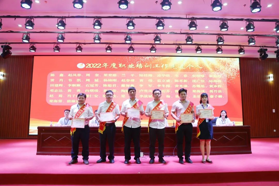 职业培训工作先进个人代表上台领奖