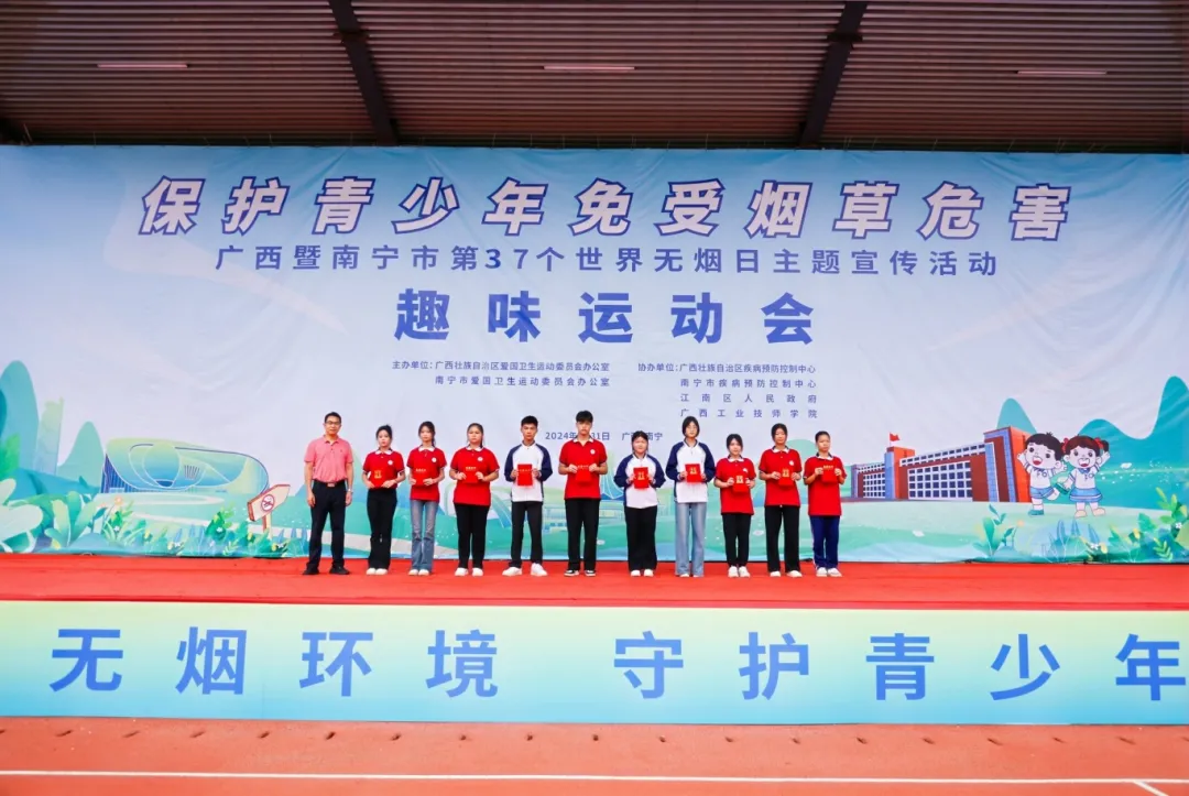 2024年5月31日是第37个世界无烟日,当天下午,由自治区爱卫办、南宁市爱国卫办主办,广西疾控中心、南宁市疾控中心、南宁市江南区人民政府、广西工业技师学院等多家单位协办的世界无烟日大型宣传活动,在广西工业技师学院隆重举办。