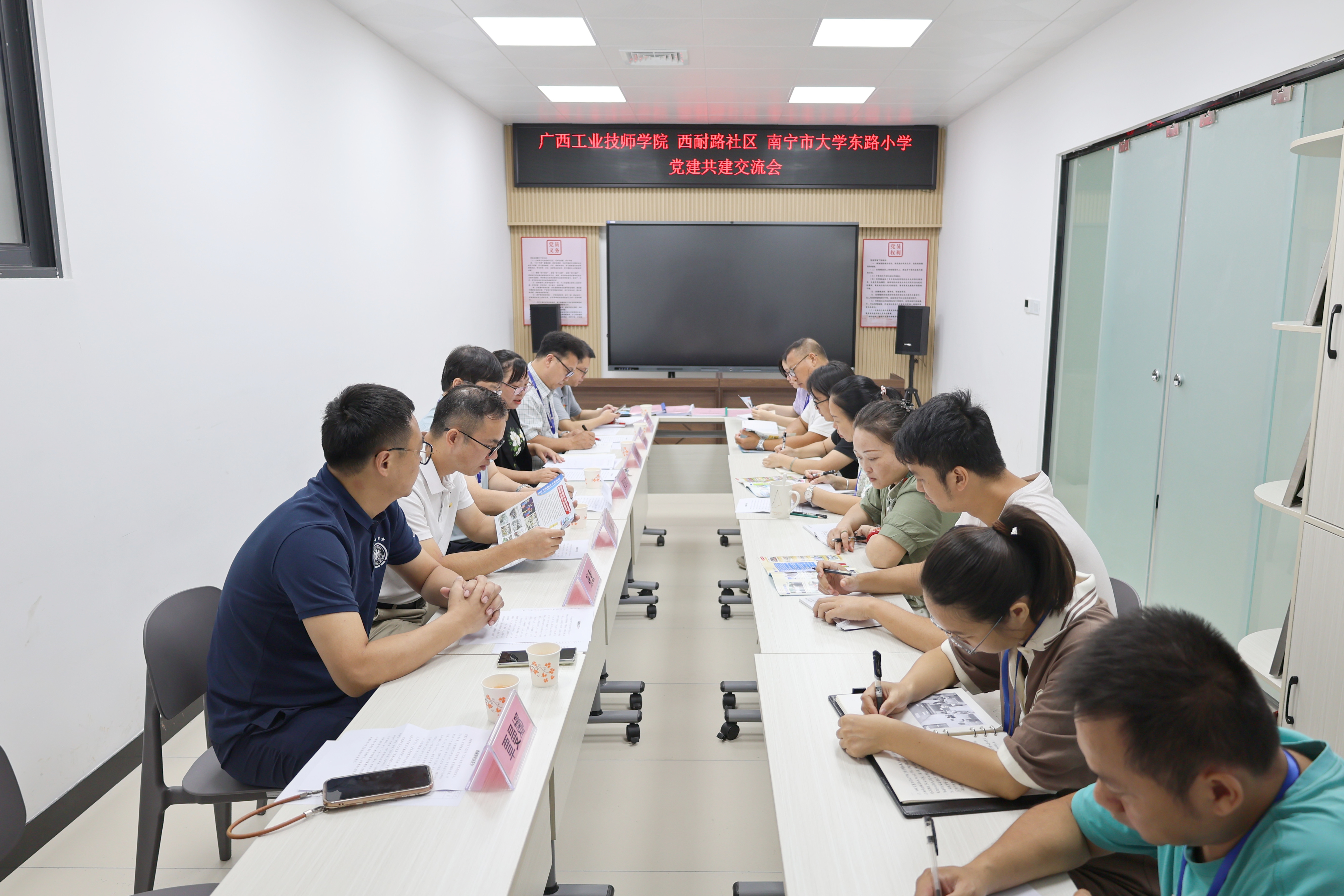 2025年9月17日上午,应西耐路社区党委邀请,广西工业技师学院党委书记、院长莫创才一行五人与西耐路社区党委书记、居委会主任吴海燕及两委班子、南宁市大学东路小学党支部书记、校长杨乐,三方紧紧围绕“资源共享、服务民生”的交流会在西耐路社区展开。把技能培训、长者服务、儿童成长这些居民关心的事儿,聊出了满满干货和具体方案。