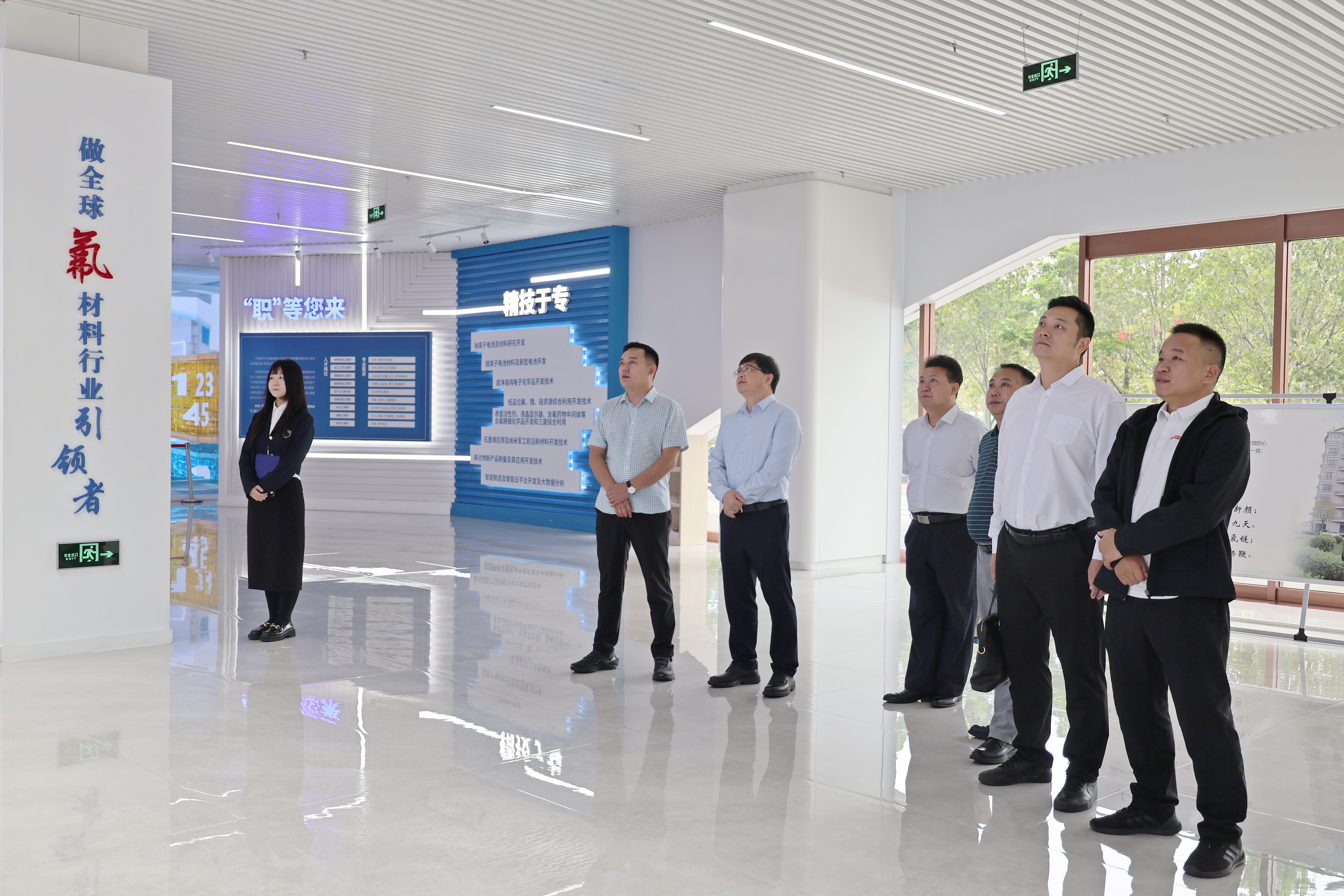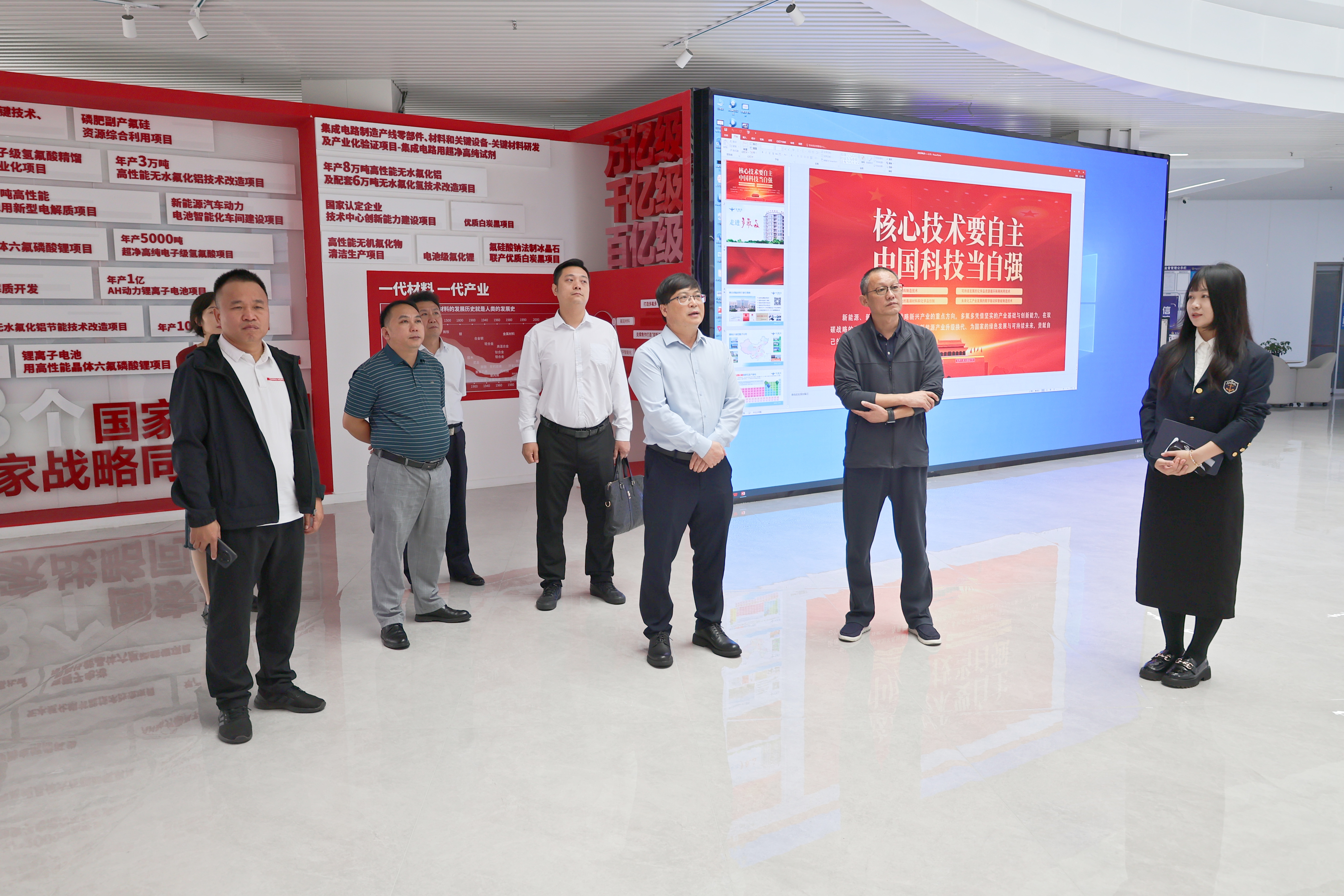 当日上午,广西工业技师学院调研团队抵达多氟多技术研究中心氟基新材料展厅,在接待团队的引导下开启调研行程。展厅内,郝建堂、王震副总经理结合企业发展历程,向调研团详细介绍多氟多的核心实力与荣誉底蕴——作为全国先进基层党组织,多氟多凭借完全自主研发的技术成果,斩获国家科学技术进步奖二等奖;业务覆盖氟基新材料、电子新材料、新能源材料、新能源电池四大板块,在行业内树立起技术标杆。