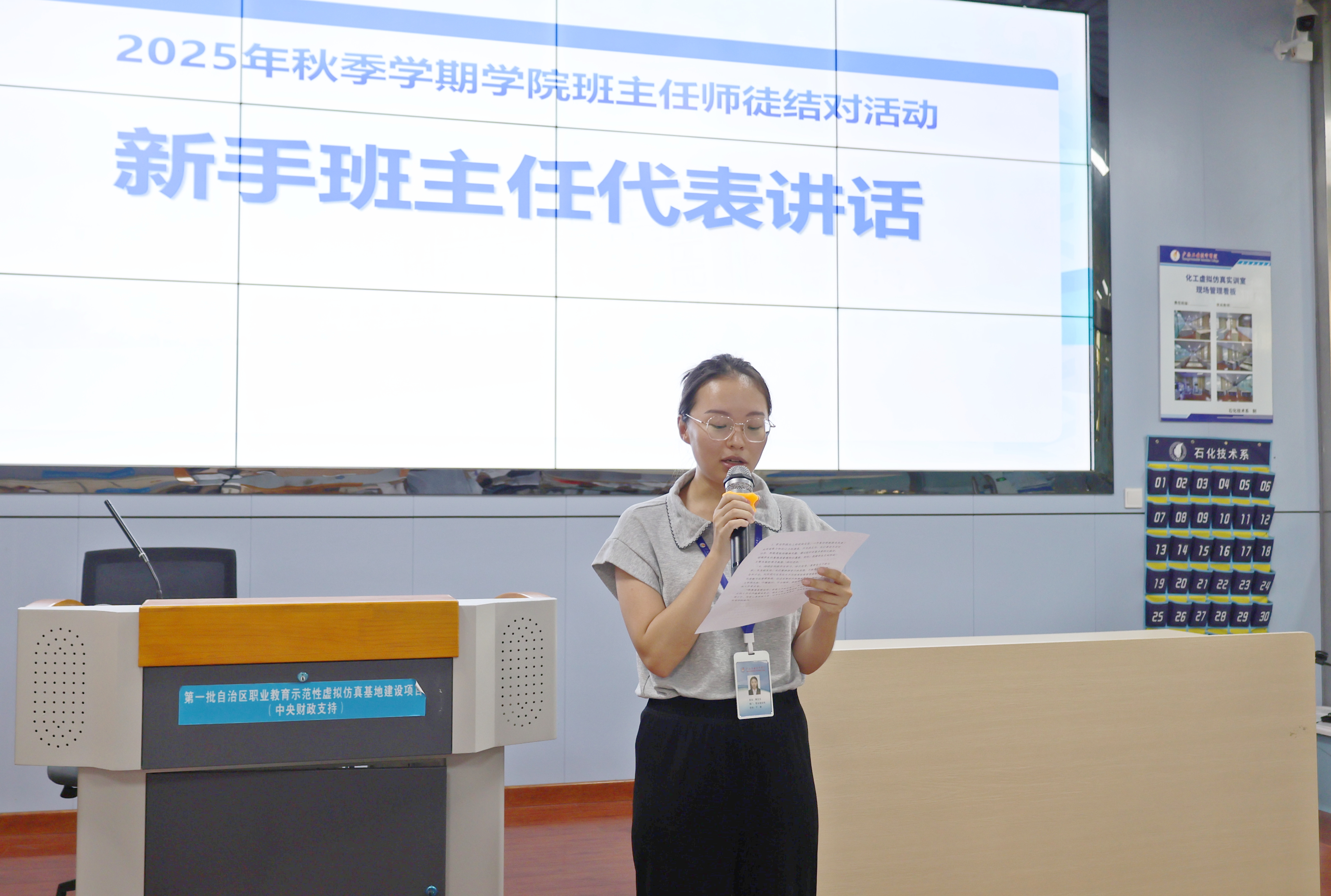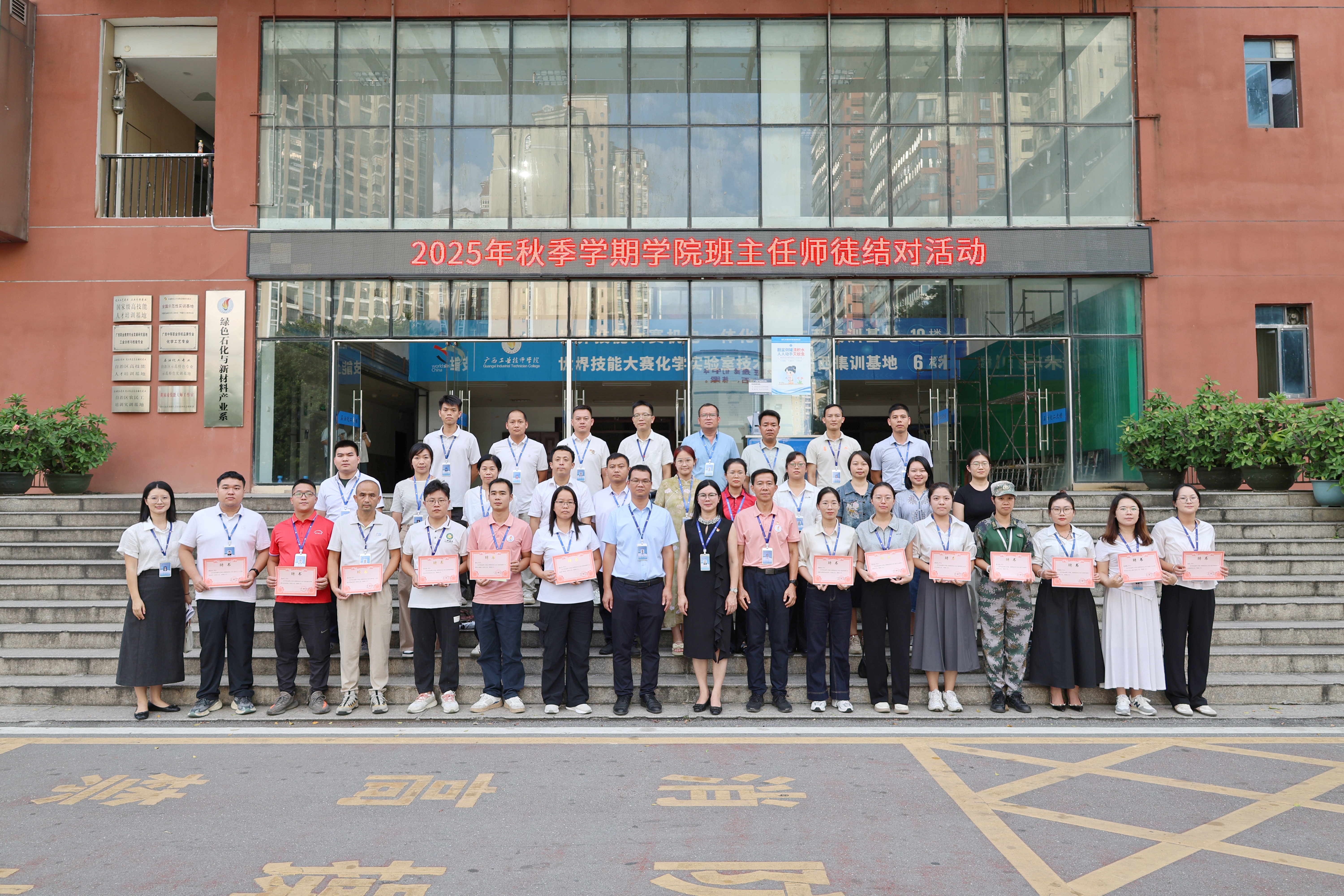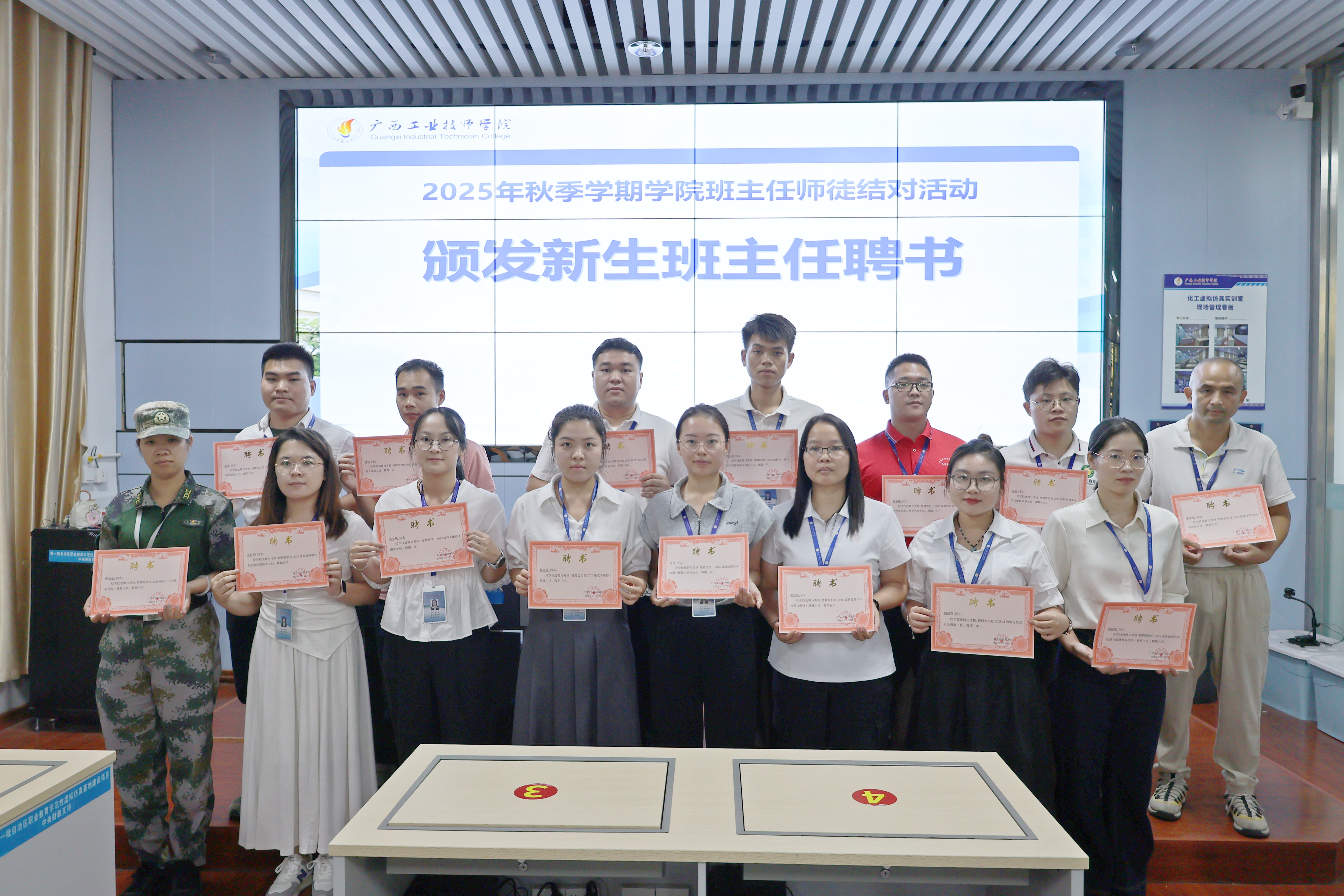 为深入推进班主任队伍青蓝工程建设,发挥资深班主任 “传帮带”示范作用,助力青年班主任快速适应岗位、提升育人能力。9月23日下午16:30,广西工业技师学院在学徒楼一楼103室举行2025年秋季学期班主任师徒结对活动。学院党委委员、副院长王晓萍,党委委员、工会副主席卢智伟,各产业系学务副主任以及18对骨干班主任导师与新手班主任共同参与活动。