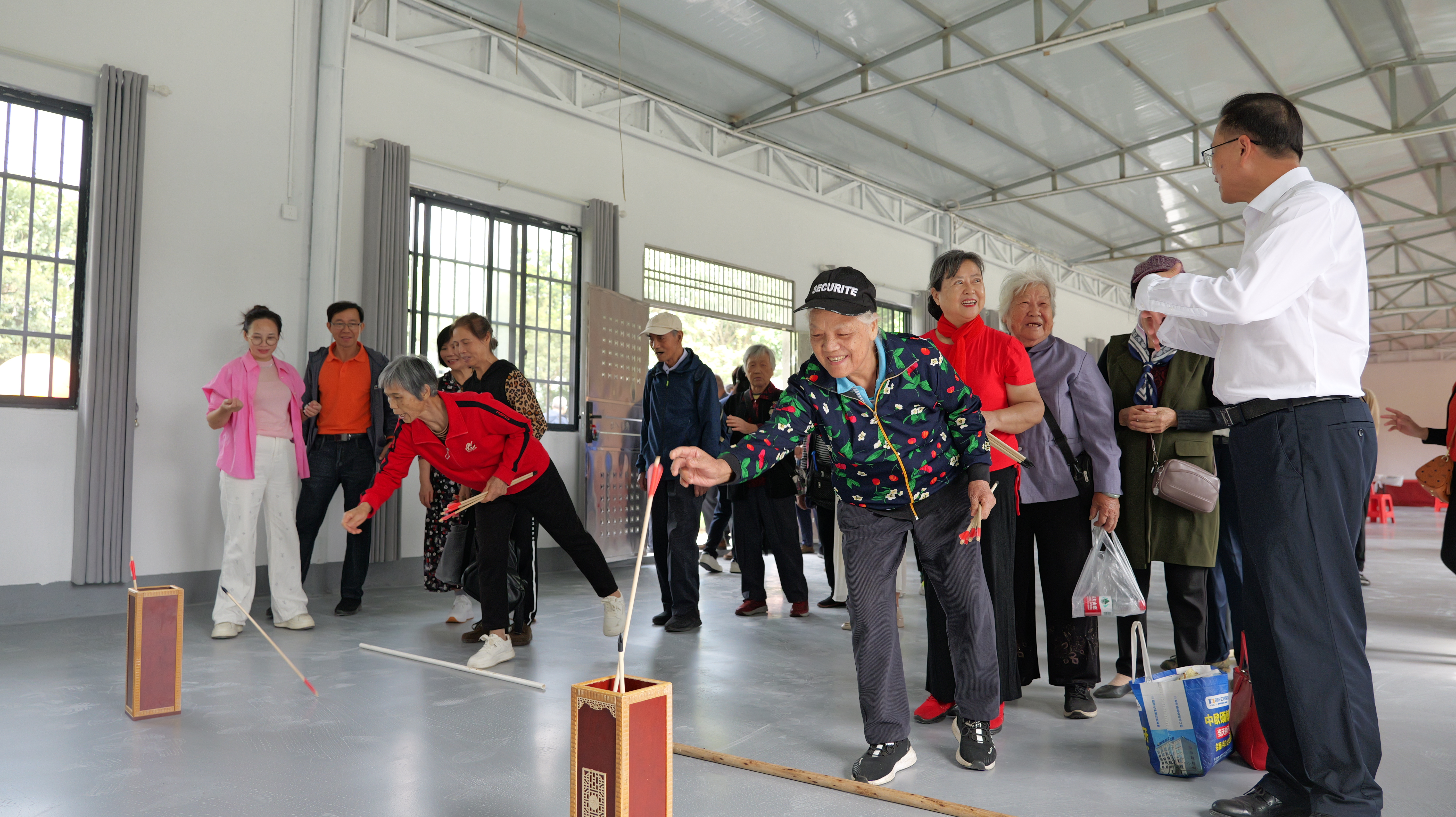 到达农场后,趣味互动环节开启。投壶区,老教师执箭瞄准,箭矢入壶时喝彩声起;夹波珠赛场,大家为参赛者鼓劲加油。欢声笑语弥漫农场,老人们脸上满是笑意,让重阳更添温暖。