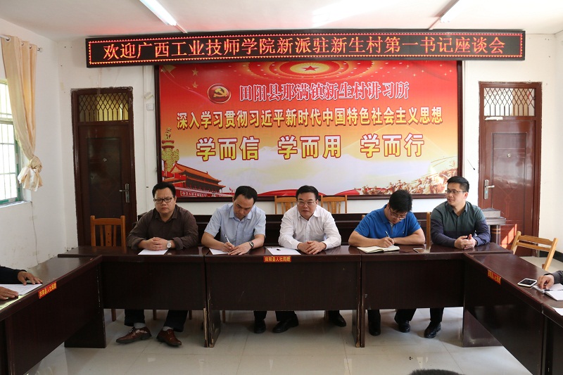 下午,在学院党委书记曾繁京的带领下,来到那满镇新生村,与新生村党支部、村民委的领导开展了座谈,学院党委办公室莫春敏主任、学院办公室包桂华副主任参加座谈会。