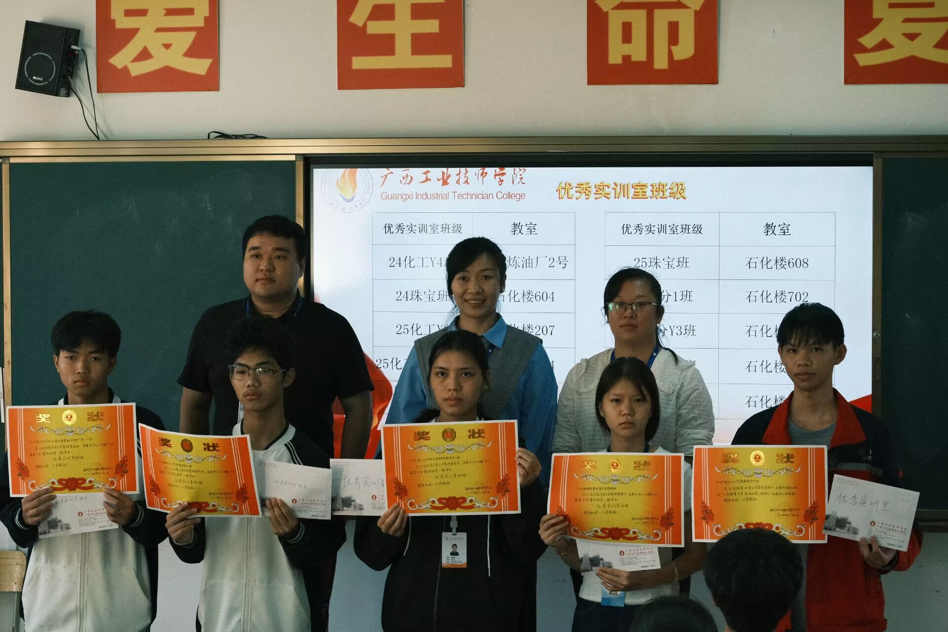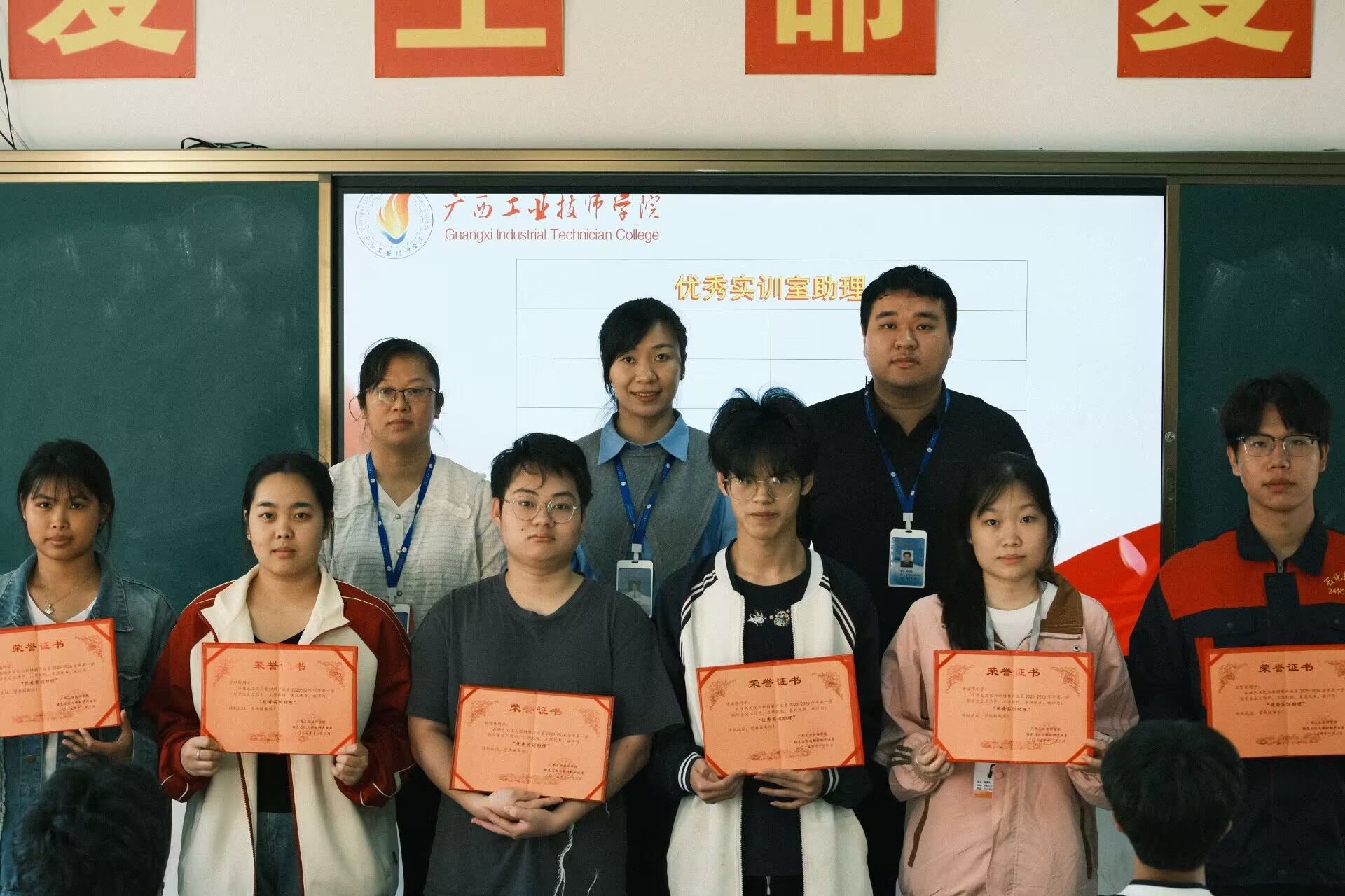 会上,赖老师首先总结了10月实训室管理工作的整体情况,对各班级及助理在实训环境维护、设备规范操作、安全制度执行等方面的付出给予肯定。随后,会议进入表彰环节,赖老师宣读了10月优秀实训室班级及优秀实训室助理名单,为受表彰集体和个人颁发荣誉证书并合影留念,现场响起热烈掌声。