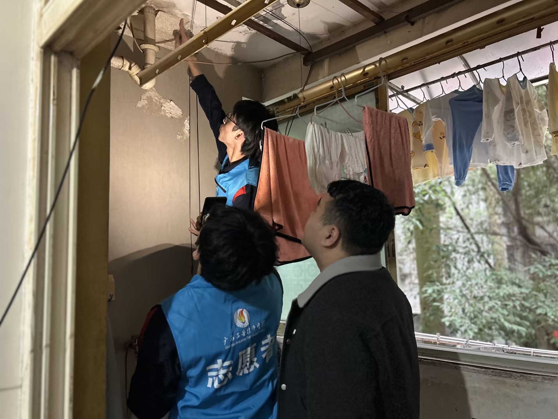 学雷锋以温情暖夕阳。志愿者同学们在老师的带领下前往独居老人家中看望。我系党支部书记张美林、学务副主任唐双梅、辅导员赖昱辰和志愿者同学们向独居的奶奶送去慰问品和关怀,陪老人谈心、帮老人打扫房间,用贴心举动传递温暖。