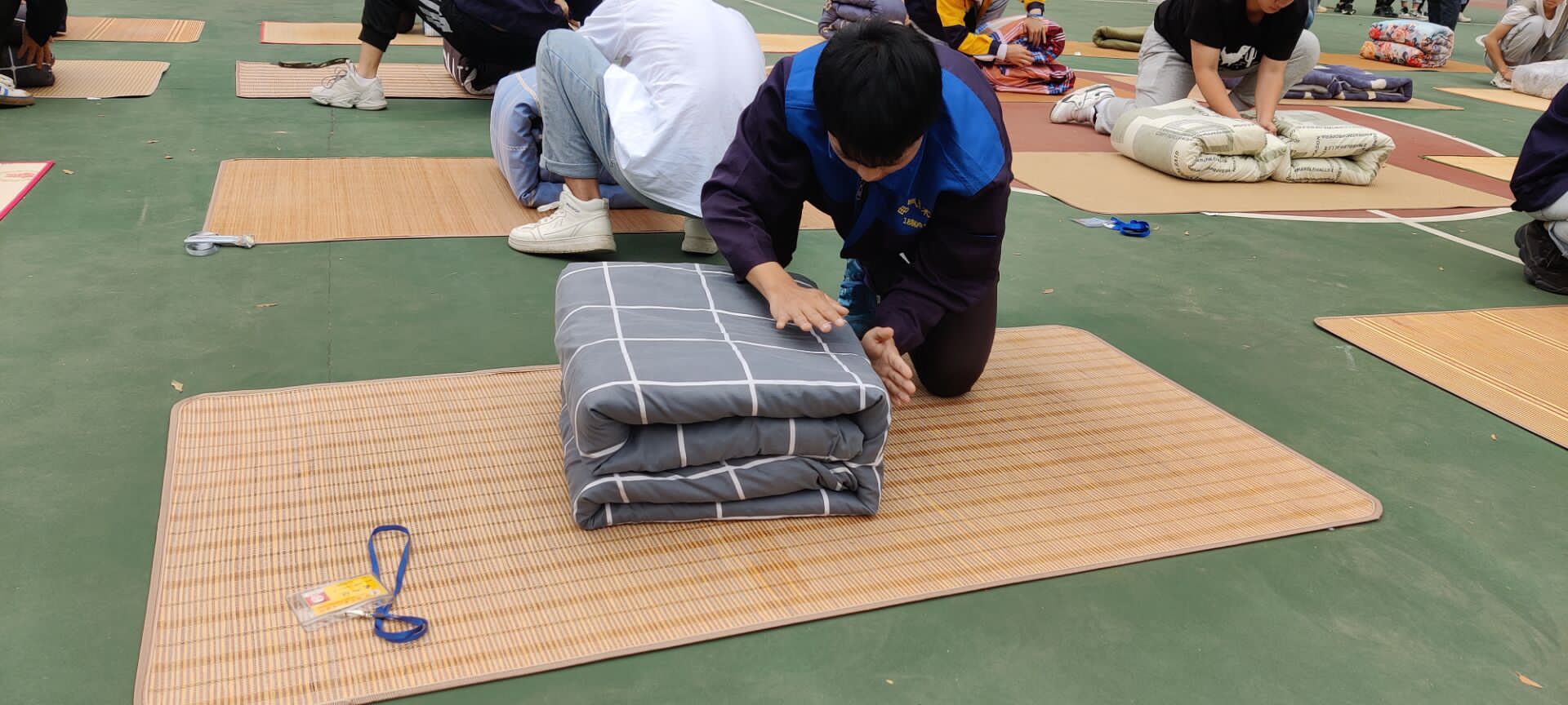 本次比赛以班级推荐、辅导员、班主任、教官推选的方式共有近70名选手参加。比赛要求选手在8分钟内将被子按照三折四叠,压平压实、四四方方、菱角分明,保证被面的平滑的要求。娴熟的动作,熟练的技巧,方方正正的被子,场边观众的指点助威,将比赛推向了高潮。