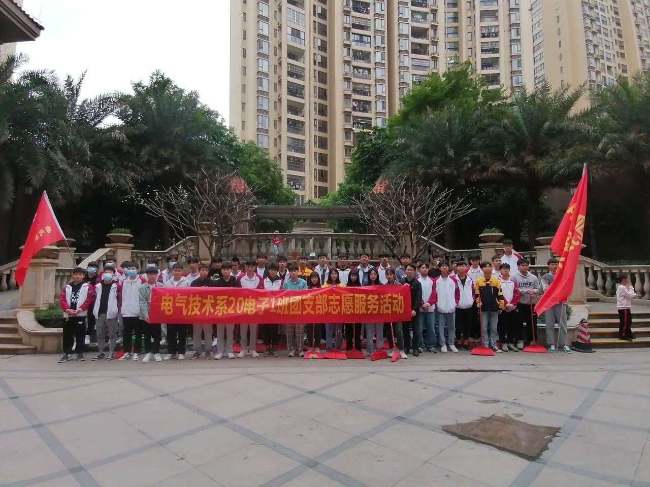结合我院桂工技团(2021)1号文件精神,电气技术系团总支积极响应上级工作部署,渗透到班级团支部开展校外社会实践活动,今天下午3:30分由班主任唐海翔老师带领20电子1班团支部在普罗旺斯香奈儿庄园进行社会实践打扫活动。活动期间,同学们认真听从班主任分工安排并有质量的完成本次社会实践活动,同学们的这种志愿服务精神得到了物业工作人员、社区居民的认可。