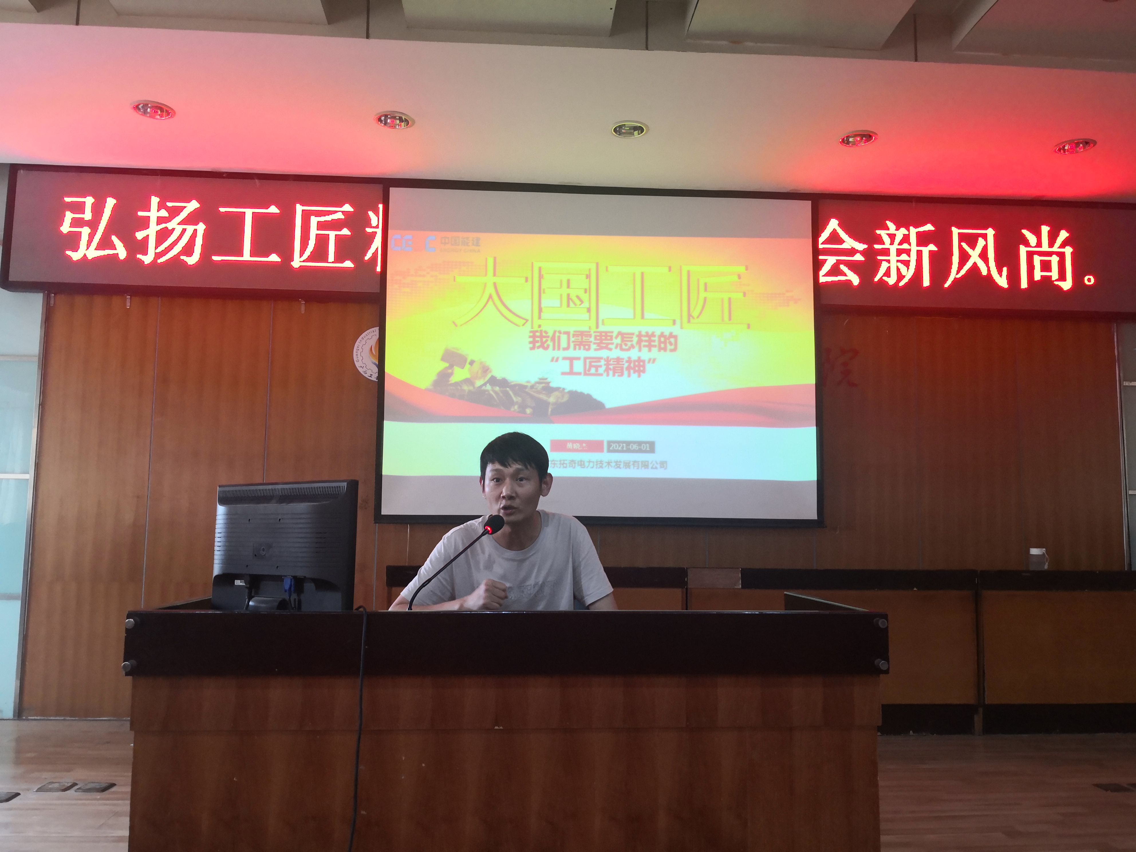 2021年6月1日,电气系在学院信息楼301开展了广西工业技师学院2021年职业教育活动周-工匠进校园报告会。本次报告会邀请到了广东拓奇电力技术有限公司的劳模-防城港核电项目部电气主管黄晓杰同志,他进入校园为广大电气学子开展了一场主题为“我们需要怎样的工匠精神”的报告会。