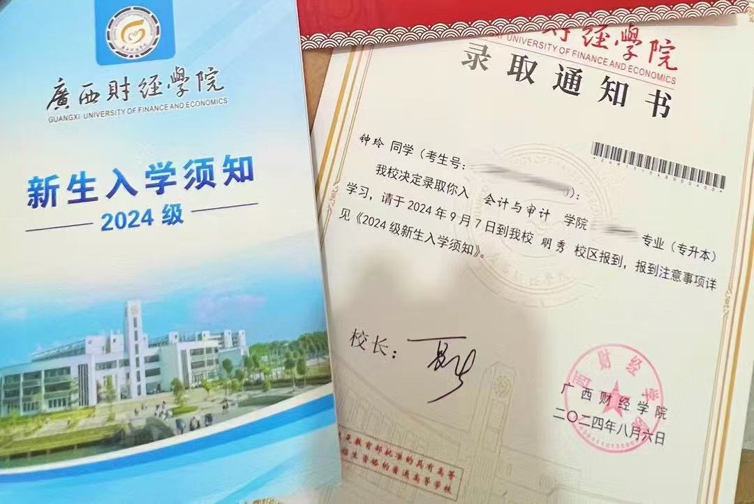 钟玲同学的《广西财经学院录取通知书》(本科)