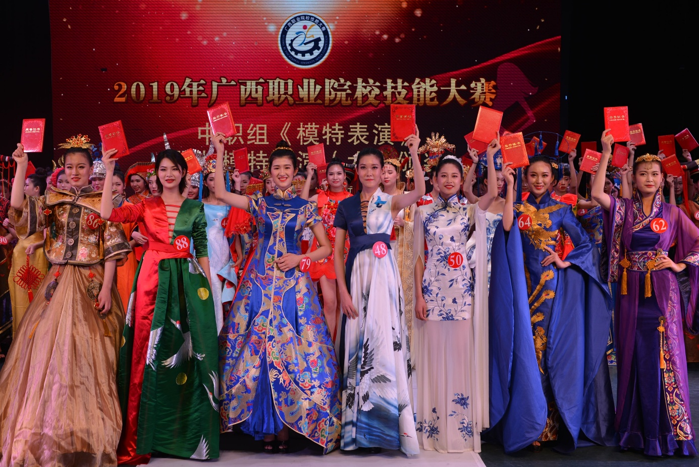钟玲(左3)荣获2019年广西职业院校技能大赛(中职组)模特表演赛项一等奖