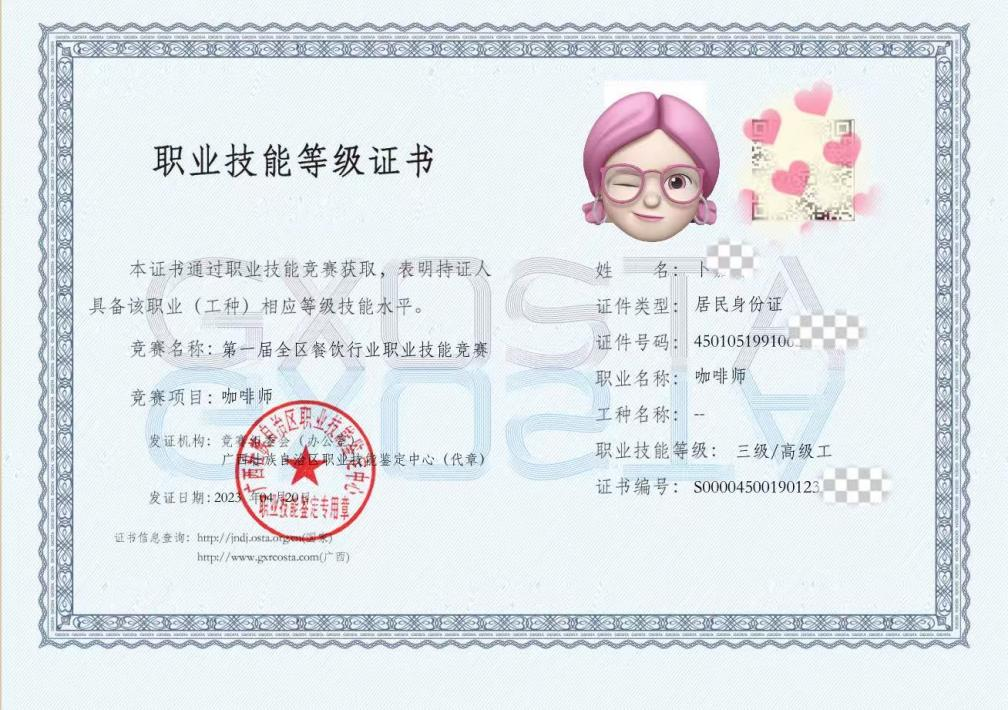 蓝喜铂(都安籍)、李珍梅荣获2023年广西职业院校技能大赛中职组《咖啡服务》赛项(个人赛)二、三等奖