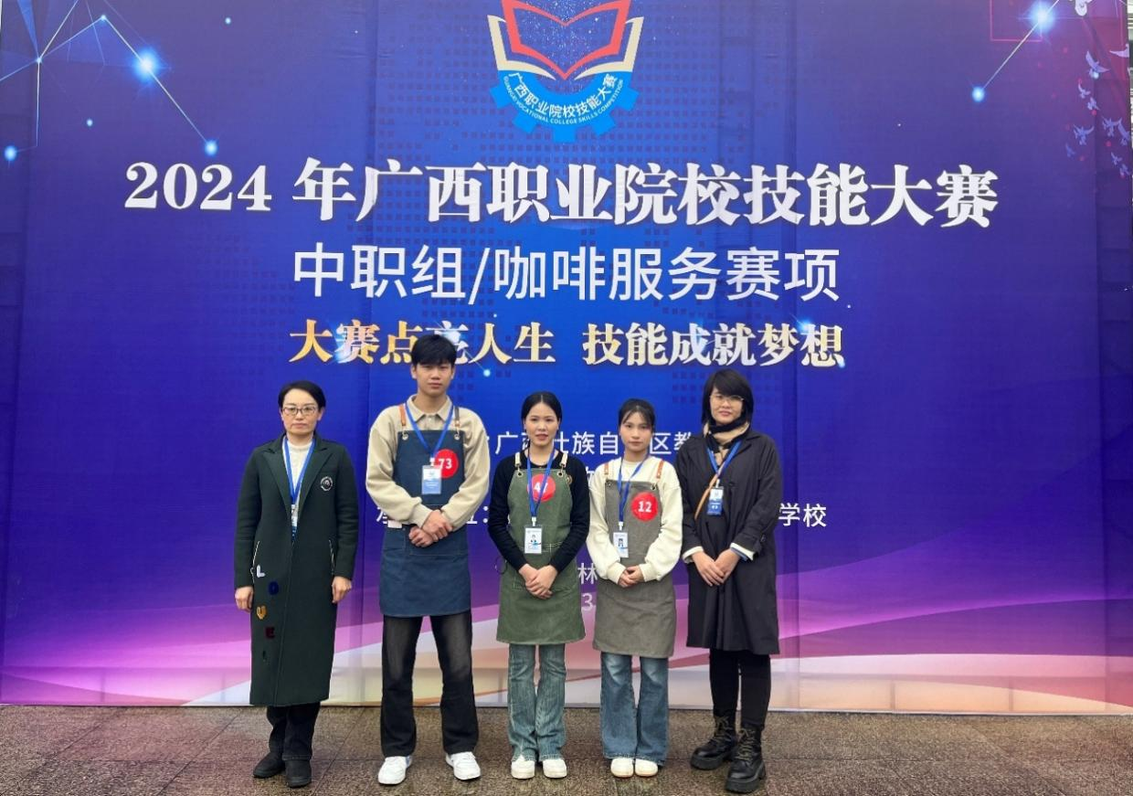 蓝喜铂(都安籍)、韦钧嬴(宾阳籍) 、雷灿绍(南宁籍)荣获2024年广西职业院校技能大赛中职组《咖啡服务》赛项(个人赛)二等奖2项、三等奖1项