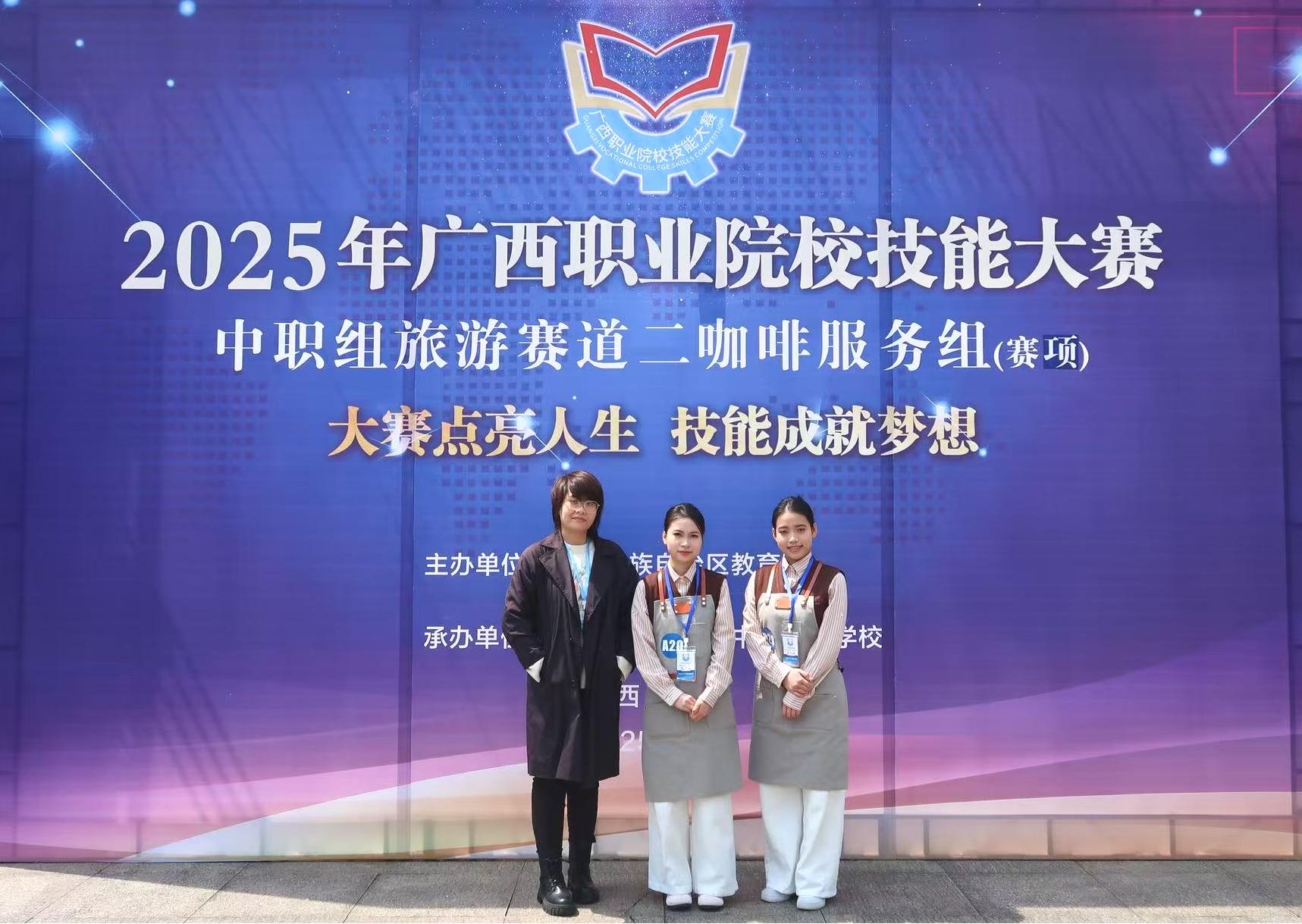 韦钧嬴(宾阳籍)、欧炫妙(梧州籍)荣获2025年广西职业教育技能大赛《咖啡服务》赛项银奖