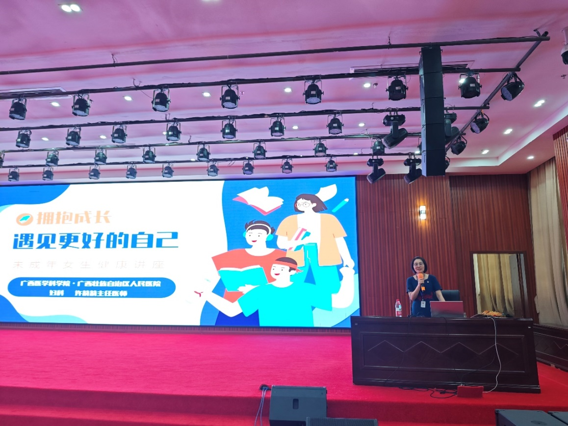 活动特邀广西壮族自治区人民医院妇科副主任许莉莉医师作题为《拥抱成长,遇见最美的自己》的专题讲座。许主任结合临床案例与学生实际需求,围绕青春期生理变化、常见健康问题预防、心理健康调适等内容展开讲解。通过真实案例解析和现场互动交流,引导学生正确认识身心发展规律,科学应对成长困惑,掌握自我保健方法,增强尊重与保护自我的意识和能力。