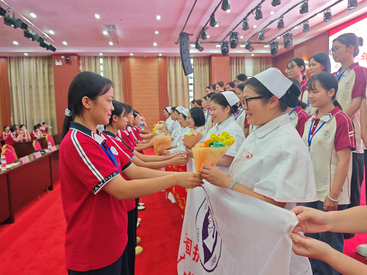 现代服务产业系女生向广西壮族自治区人民医院医护专家团队献花