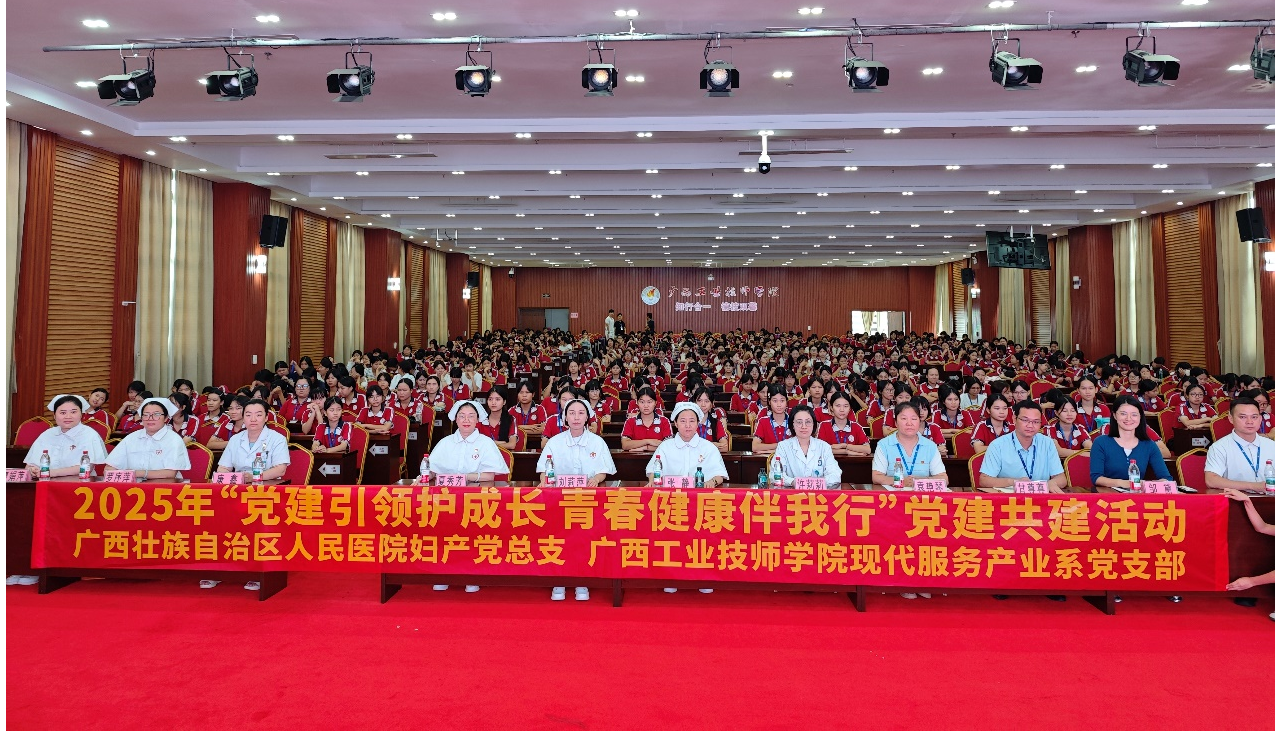 为深化党建共建机制,推动医校协同育人,切实护航青少年身心健康发展,2025年9月28日下午,广西工业技师学院现代服务产业系党支部与广西壮族自治区人民医院妇产党总支联合开展“党建引领护成长 青春健康伴我行”党建共建主题党日活动。学生工作科副主任甘尊尊、邹黛,现代服务产业系副主任黄彬彬及德育辅导员出席活动,2025级全体女生参与。