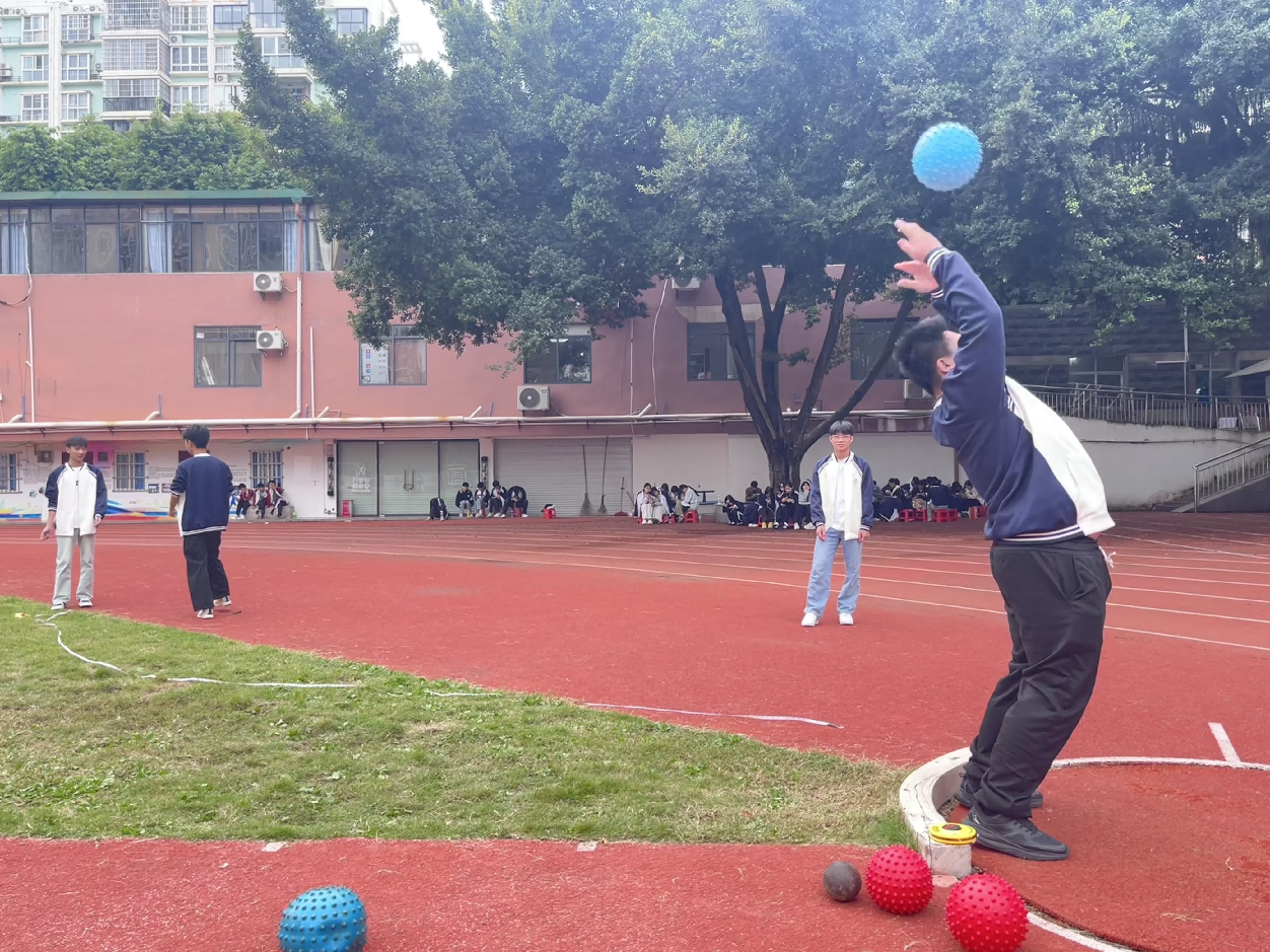 田赛区域同样精彩纷呈。立定跳远赛场上,选手们纵身一跃的矫健身姿赢得阵阵掌声;实心球赛区则成为力量与技巧的展示舞台,每一道优美弧线都凝聚着平日训练的汗水与付出。
