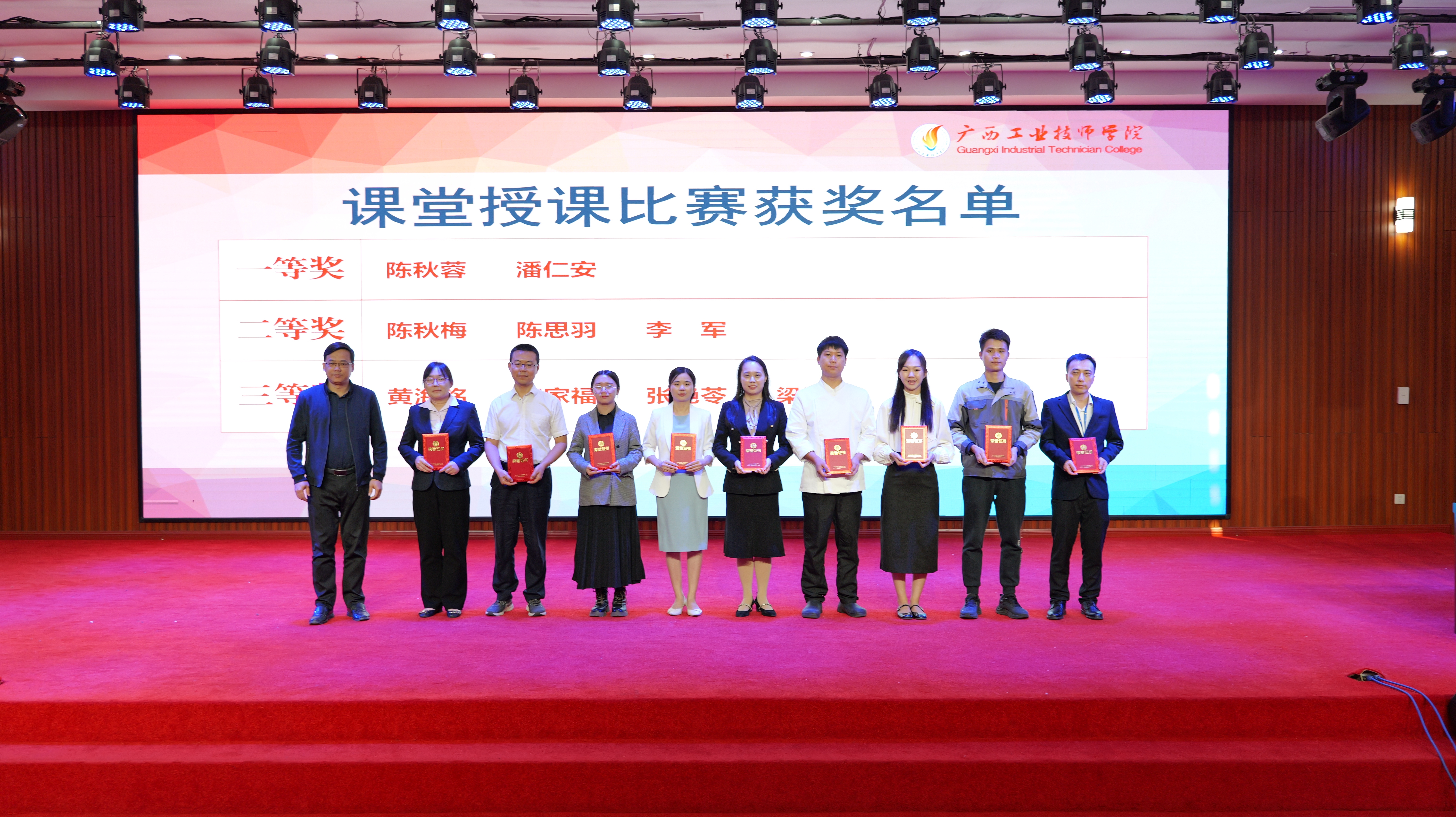 陈秋蓉(右3)、潘仁安(右4)在课堂授课比赛中荣获一等奖