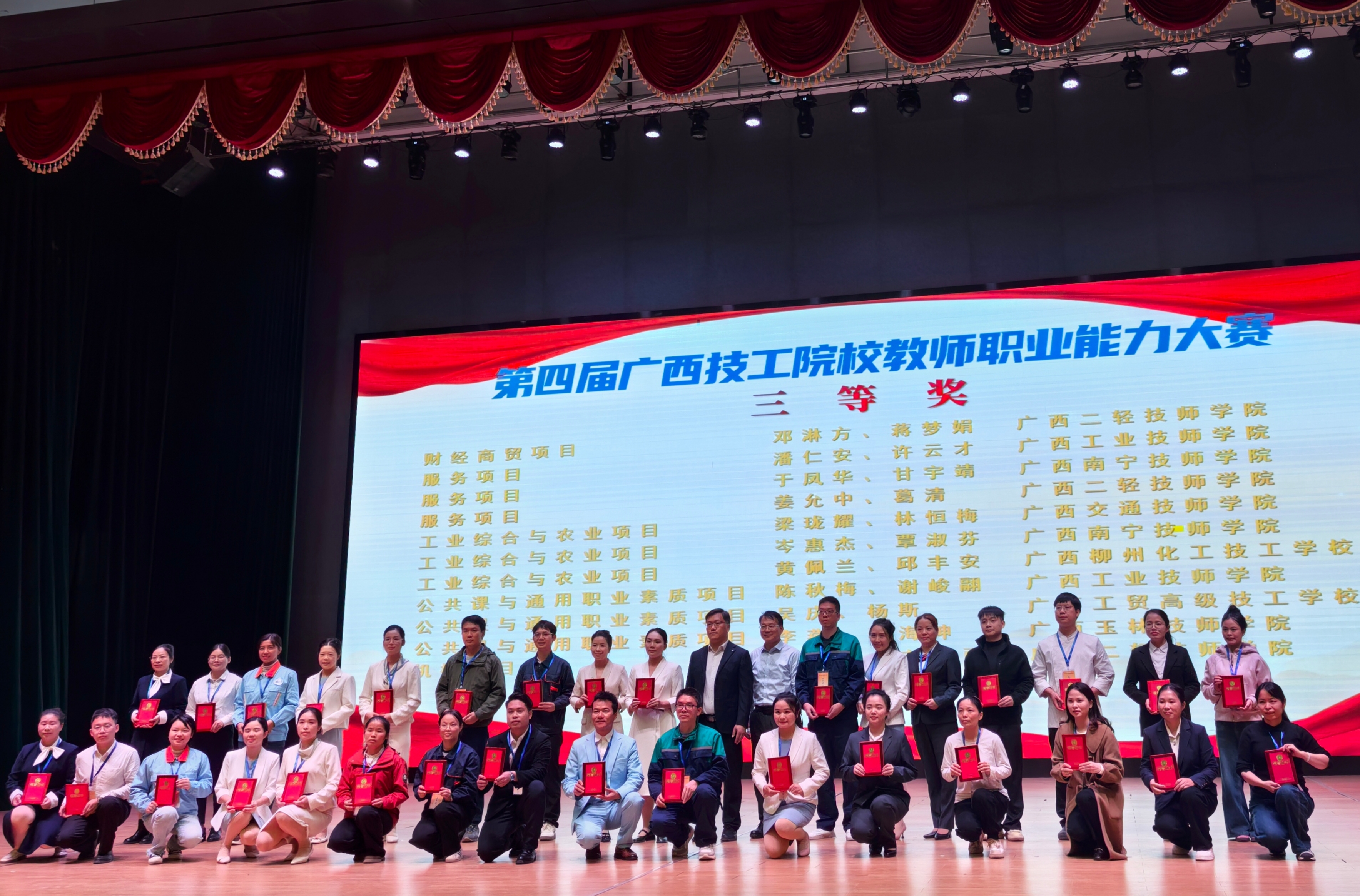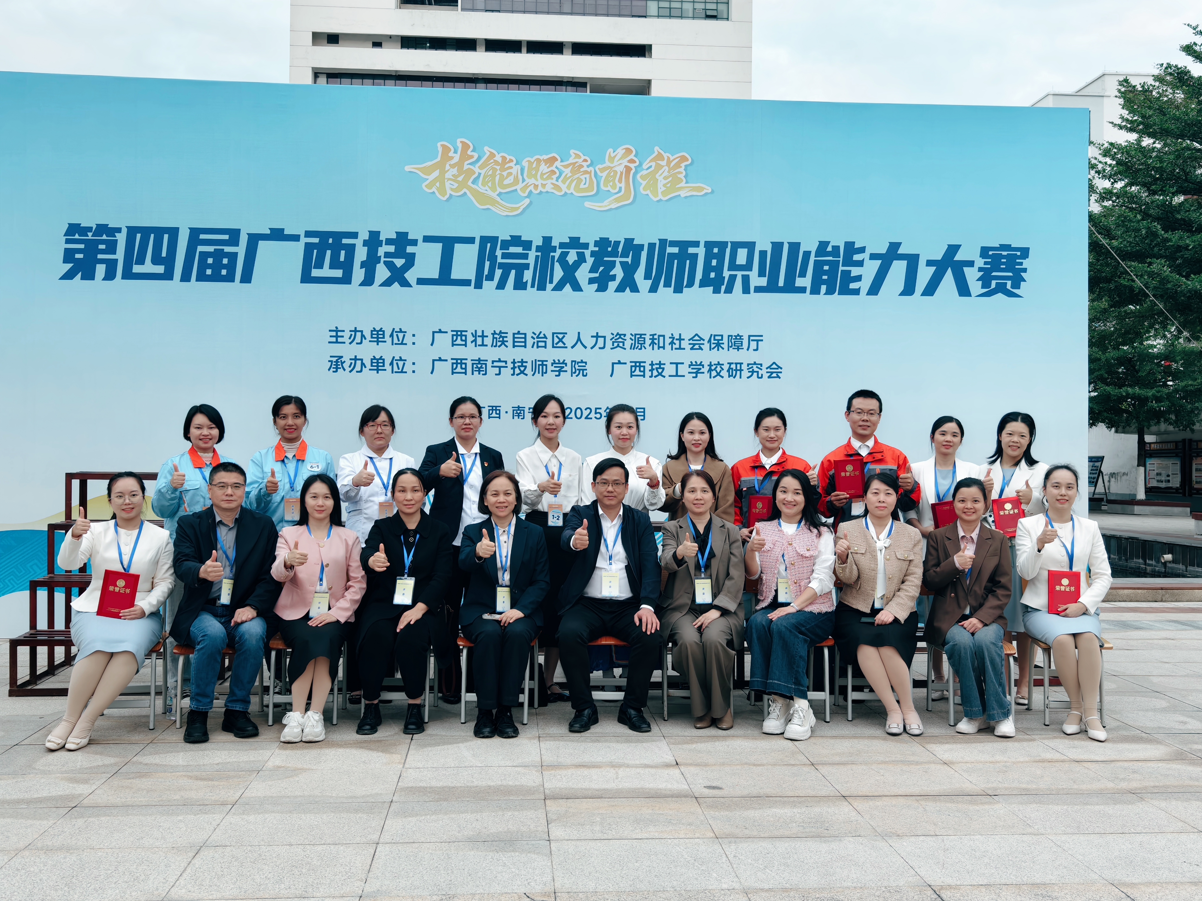 2025年11月19日至22日,由广西壮族自治区人力资源和社会保障厅主办的第四届广西技工院校教师职业能力大赛在广西南宁技师学院举行。来自全区技工院校的362名教师围绕11个赛项展开比拼,全面展现了新时代技工院校高质量发展的成果。广西工业技师学院现代服务产业系教师表现优异,陈秋蓉、蒋雨洁团队荣获文化艺术与综合类赛项二等奖,潘仁安、许云才团队荣获服务类赛项三等奖。