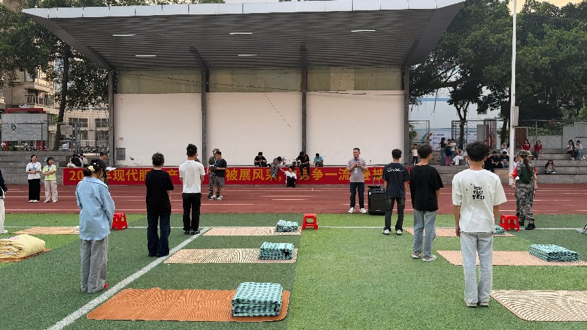 为培养学生良好生活习惯,强化自律与细节意识,近日,现代服务产业系在学院田径运动场举行学生叠被子比赛。党支部书记袁艳琴、副主任黄彬彬及俸旗章、江素妮等德育辅导员到场观看,共同见证学子们在一铺一折中展现的自律风采。