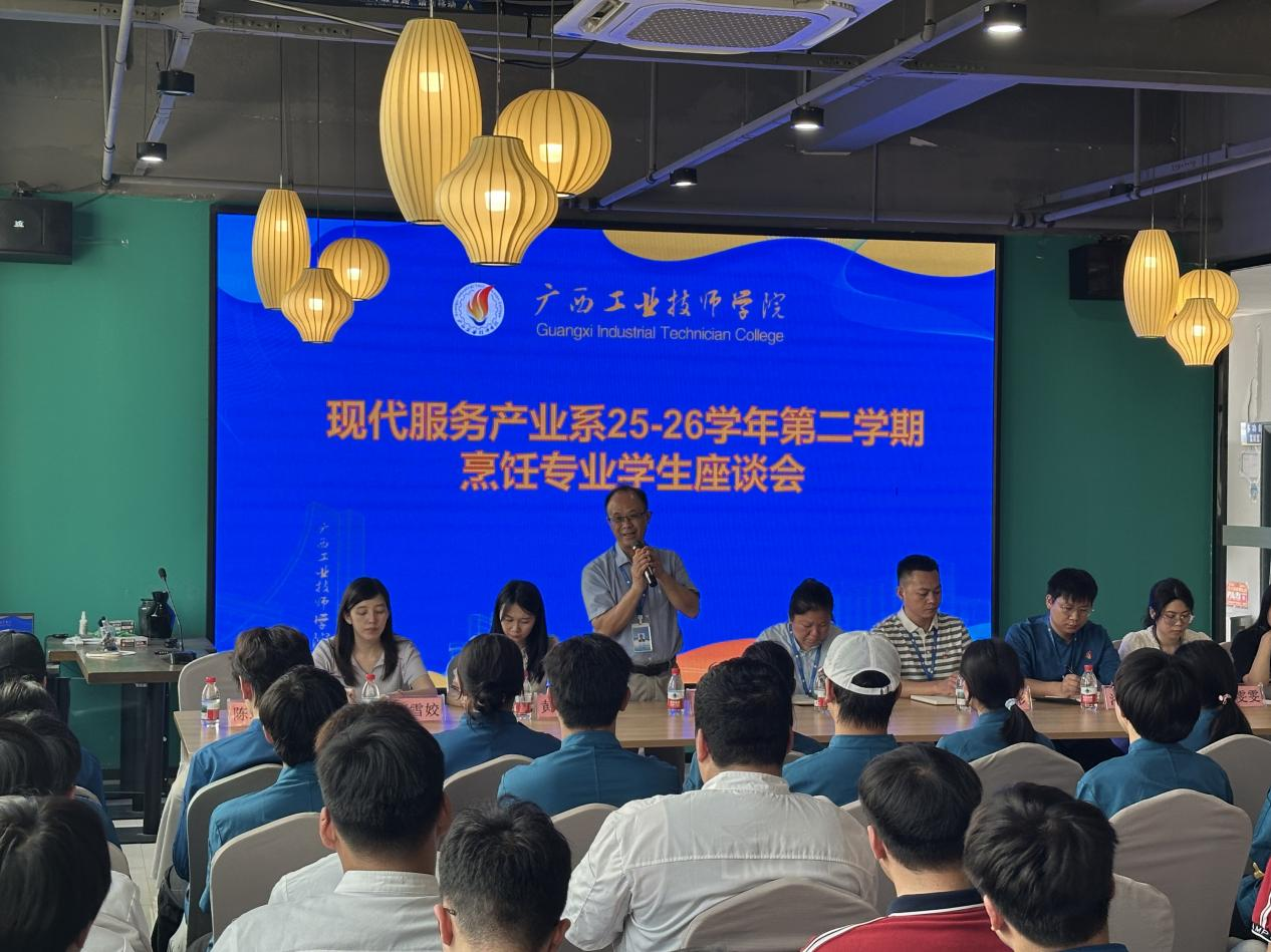 为深入落实自治区工业和信息化厅党组巡察组反馈意见整改工作要求,切实解决学生关切,持续优化教学管理与服务,近日,现代服务产业系召开烹饪专业学生座谈会。系中层干部、烹饪专业教师、班主任、辅导员代表与各年级学生代表面对面交流,围绕日常学习、课程教学、实训管理等方面展开深入讨论。