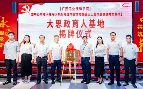 在活动中,由学院党委书记、院长莫创才与盛天上影电影党校校长范广共同为大思政育人基地揭牌。下一步,双方将依托该平台进一步深化学院党建与思政教育资源整合,为常态化党史学习教育及学院思政教育实践提供新的阵地支撑。