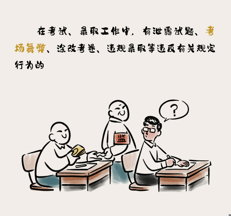 能否严格按照规定开展考试、录取工作,做到公开公正、竞争择优,关系到党和国家事业发展,关系到社会公平正义。承担考试、录取工作任务的党员、干部,必须提高思想认识,认真履行职责,严格遵守纪律规定,维护考试、录取工作良好秩序。对于违反规定者,应当按有关规定严肃处理;对于其中的党员,还应当依照《中国共产党纪律处分条例》有关规定,给予党纪处分。